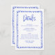 Tarjeta De Recepción Detalles del Boda retro francés azul dibujado a ma