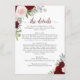 Tarjeta De Recepción Detalles del Boda Rústico Borgoña Rojo y Rosas Ros