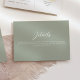 Elegante tarjeta de detalles de boda verde sabio con colores que incluye románticos pájaros amantes del oro y escritura moderna de caligrafía. Perfecto para proporcionar información de recepción, indicaciones o alojamiento a los huéspedes. Un bonito diseño minimalista para bodas de primavera, verano, otoño o jardín. Personalizable completo para igualar su suite boda.