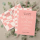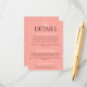 Detalles del boda, sencillos y elegantes, retro y colorido. Con un fondo color rosa pálido y funky y un diseño de texto blanco y lechoso. Toda la información es personalizable como sitio web, transporte, alojamiento . Acompáñalo con otros productos de esta elegante suite boda retro hecha a mano.