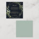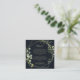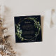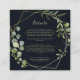 Esta tarjeta geométrica de boda azul dorado para detalles es perfecta para un boda moderno. El diseño está decorado con hermosas hojas verdes pintadas a mano en un fondo azul oscuro, adornando un marco geométrico dorado.