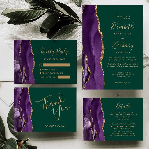 Purple Gold Agate Emerald Green Wedding SuiteDiseñado por Akhates Designs