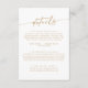Esta tarjeta de gabinete de detalles dorados y bodas blancos de moda boho es perfecta para un boda minimalista. El blanco y el oro amarillo neutro de diseño bohemio moderno presentan una caligrafía rústica sencilla con un estilo único y clásico.