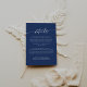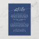 Esta tarjeta de gabinete de detalles de boda azul real de moda boho es perfecta para un boda minimalista. El audaz diseño bohemio moderno azul oscuro presenta una caligrafía rústica sencilla con un estilo único y clásico.