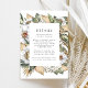 Elegante y florido boda detalles tarjeta de gabinete con flores de acuarela blanca y un frondoso follaje en ricos tonos de tierra verde y marrón. Personalice las tarjetas de información de los bodas añadiendo detalles clave como alojamiento en el hotel, información de recepción de bienvenida, su sitio web, etc. Diseñado para coordinar con nuestra colección de bodas Boho White Floral & Greenery.