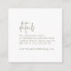 Esta moderna tarjeta de gabinete de detalles de código QR verde y blanco de moda es perfecta para un boda sencillo. El minimalista diseño boho presenta una tipografía bohemia rústica única y elegante en un color verde oliva neutro.