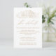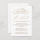 Tarjeta de detalles rústica boda con un ilustracion de un granero con dibujos dorados que se muestra en la parte superior con un fondo blanco. Las tarjetas de detalles del boda del granero presentan elementos elegantes de caligrafía dorada a lo largo de todo el diseño. Personalice las tarjetas de detalles de los graneros de oro con información importante como alojamiento de hotel, códigos de grupo para tarifas con descuento, información de transporte, direcciones, información de recepción de bienvenida y la página web de su boda. Diseñado para coordinar con nuestra elegante colección de bodas Rustic Barn.