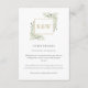 Con un follaje de hojas de acuarela delicado, esta moda información botánica de los detalles de la tarjeta del recinto puede ser personalizada con sus iniciales de monograma e información de los detalles de los invitados. Al revés hay un fondo verde sabio al revés. Diseñado por Thisisnotme©