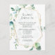 Boda de acuarela de moda de madera eucalipto detalles de invitados tarjetas de recinto con marco geométrico dorado y elegante personalizable tipográfico a los detalles de tu evento.