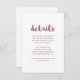 La tarjeta de detalles de los bodas Subió en rosa y blanco presenta tipografía de escritura caprichosa y un diseño mínimo.