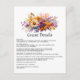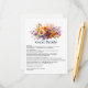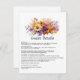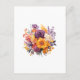 Tarjeta de detalles boda con flores morado, naranja y amarillo. Ideal para cualquier tema o boda en el jardín.