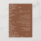 Infórmese a sus huéspedes con esta tarjeta de detalles de boda personalizada, adornada con encantadores botánicos dibujados a mano. El cálido fondo de terracota exhibe con elegancia el delicado follaje de marfil, aportando un contraste cautivador. Este exquisito diseño ofrece una combinación única de encanto terrenal y estilo sofisticado, asegurando que toda su información importante se presente con una gracia memorable.