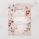 El diseño de esta tarjeta de detalles bodas presenta un bonito fondo rosa suave y afligido con delicados pulverizadores florales rosas, marrones, blancos, morados y verdes. Es romántico con un toque de cosecha. Creado por Simply Farmhouse Press, es parte de la Romántica suite de tarjetas Rosa Boda Floral Rosa.
