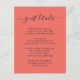 Proporcione a sus invitados los detalles importantes con esta elegante tarjeta de inclusión de boda en azul marino y coral que presenta una fuente de escritura moderna. Artículos coincidentes disponibles.