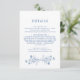 Tarjeta De Recepción Detalles elegantes del Boda floral azul clásico