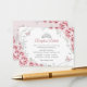 Tarjetas de detalles de recepción de Quinceañera rosadas, plateadas y blancas con flores. Características, letra de escritura, mariposas plateadas, rosas de acuarela y tiara. Perfecto para una celebración glamorosa de princesa elegante. Personalice con sus propios detalles.