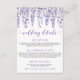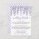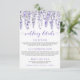 Elegante tarjeta de detalles de boda de color lavanda violeta con flores.