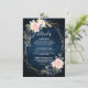 Tarjeta de detalles de invitación de boda floral geométrica azul marino oscuro con un elegante ramo de flores azul marino, azul real, blanco, rosa y hojas de eucalipto verde salvia y un marco geométrico neutro con brillo elegante. Por favor, contácteme para cualquier ayuda en personalización o si necesita algún otro producto con este diseño.