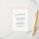 Hermoso pastel rosa y blanco con tarjeta de detalles de Boda clásica con escritura moderna.