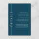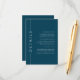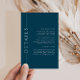 Nuestro personalizable minimalista invita a insertar la plantilla de la tarjeta de detalle, con un esquema de color azul oscuro, perfecto para un boda, bar o murciélago mitzvah, ducha de novia, cena de ensayo o ducha de bebé.