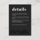 Moderna y moderna tipografía en negrita detalles de boda negro mini tamaño tarjeta de gabinete con texto de plantilla. +++++++++++ Adecuado para el estilo contemporáneo de cualquier boda de temporada.