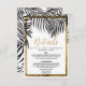 La falsa fronda impresa de la palmera del esquema y del negro del oro de la playa tropical elegante, elegante, y moderna se va en blanco con la falsa tipografía impresa de la lentejuela del oro, casando la tarjeta de detalles de la información. Este diseño clásico y sofisticado es perfecto para el graduado con clase, elegante, y de moda. Personalice con su propio mensaje en el frente y una inicial modificada para requisitos particulares del monograma en la parte posterior. Todo el diseño de la impresión de la foto.