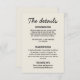 Detalles del boda francés retro sencillo y elegante. Con un fondo cremoso y divertido y un diseño de texto negro. Toda la información es personalizable como sitio web, transporte, alojamiento . Acompáñalo con otros productos de esta elegante suite boda retro hecha a mano.