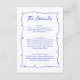 Esta hermosa tarjeta de gabinete está diseñada para mostrar los detalles clave de su boda. El extraño borde ondulado dibujado a mano y el brillante tipo de letra manuscrito le agregan un toque de alegría y diversión a la celebración entrante.