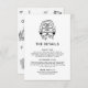 Esta tarjeta de detalles boda presenta un diseño limpio y minimalista con un encantador ilustracion en blanco y negro de un auto "Just Married" en la parte superior. La disposición es sencilla y elegante, con una tipografía moderna y sutiles toques decorativos para organizar información clave sobre la recepción, el alojamiento y el sitio web boda. Perfecto para una celebración atemporal y elegante.