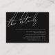 Cartas de detalles del Boda de tipografía con escritura minimalista en blanco y negro - Elegancia clásica en una estética oscura. Aumente su invitación boda con nuestras modernas tarjetas de detalles de tipografía en blanco y negro, una opción atemporal para su día especial. Esta invitación combina a la perfección elementos de diseño clásicos y elegantes con una estética oscura, creando un sorprendente contraste que marca un tono formal y sofisticado. La sencillez de la combinación de colores blanco y negro y la elegancia de la tipografía blanca hacen de estas tarjetas de detalles bodas una elección perfecta para las parejas que buscan una declaración sencilla pero impactante. Elija estas tarjetas de detalles para que su amor brille en una fusión clásica y moderna