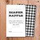 Presentamos nuestras tarjetas de envoltorio de rifas de pañales, una deliciosa adición a su ducha de bebé con temática de barbacoa. Estas tarjetas presentan tipografía negra y un reverso de manto negro y blanco.
