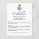 ¡Ancores ahoy! Infórmele a sus huéspedes dónde se llevará a cabo la recepción de su boda con esta divertida tarjeta de direcciones náuticas / detalles. Esta tarjeta de detalles cuenta con un ancla vintage de un barco con una cuerda de mar y flores en los tonos de color violeta, azul, rosa y amarillo dorado que se combinan con un fondo blanco cremoso. Los detalles de su fiesta se imprimen en tinta azul y negra en un guión y letra cursiva. Puede cambiar fácilmente los colores y estilos de fuente para adaptarlos a sus necesidades. La parte posterior de la invitación se muestra con un patrón floral. Puede personalizar completa de la parte posterior de la invitación y borrar el patrón floral y usar un color sólido para satisfacer sus necesidades. Si necesita más espacio para la información de su boda/fiesta, puede borrar fácilmente el patrón de respaldo y usar la parte posterior de la tarjeta. - Para más detalles, puede poner direcciones, información de hotel, sitios web o cualquier información que desee transmitir a sus huéspedes. Detalles / Tarjetas de dirección para ... Bodas, cenas de ensayo, duchas de novias Eventos de negocios Organizaciones benéficas / cenas de recaudación de fondos Fiestas - aniversarios, cumpleaños, ceremonias de premiación Eventos de venta Esta tarjeta de detalles del boda es parte del juego de invitaciones de boda Anchors Away disponible aquí Productos de juego que muchos disfrutan... Etiquetas: tarjeta de direcciones, anclas, náuticas, anclaje de barco, barco, verano, playa, océano, azul,