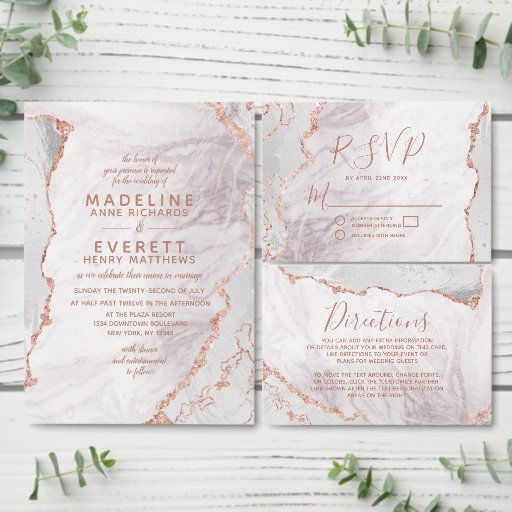 White Marble Agate with Rose Gold Foil WeddingDiseñado por Lulu Jager