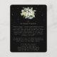 Una tarjeta de acompañamiento de boda plana negra para información de viaje de la boda o para indicaciones si su recepción es en un lugar diferente. Con un ramo/posy de bayas de nieve y eucalipto pintados a mano en la parte frontal y una corona en la parte posterior de la tarjeta. Todo el texto es totalmente editable y los puntos dispersos en la parte delantera y trasera se pueden eliminar antes de realizar el pedido si lo prefiere. Esta tarjeta está disponible con diseños botánicos alternativos, en formato horizontal y en diferentes colores. Por favor, consulte la Colección en mi tienda para ver todas las opciones y artículos coordinados.