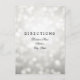 Diseño elegante de "Indicaciones para llegar" para boda con motivo de luces brillantes plateadas románticas, nombres personalizados y texto de fecha. Impresiona a tu familia y amigos con este diseño moderno y con estilo. Fácil de usar y fácil de personalizar.