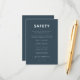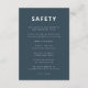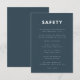 Tarjeta de seguridad covid-19 boda sencilla y elegante con un diseño escandinavo escandaloso minimalista moderno con una tipografía contemporánea en blanco sobre un fondo azul humo oscuro en un estilo informal. El texto se puede personalizar fácilmente para un diseño único y amable que mantenga a los huéspedes seguros durante su día especial, incluyendo pautas de distanciamiento social, máscaras faciales, seguridad del recinto y un mensaje de seguridad de personalizado covid-19 coronavirus para sus huéspedes.