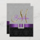La elegancia sofisticada se transmite por este hermoso diseño de invitación de recepción de boda. Un patrón de damasco gris y negro sobre negro sirve como fondo para un efecto de foto de la inicial dorada metálica M y una cinta de satén púrpura y un broche de diamantes TODO IMPRESO en una tarjeta plana. Una forma perfecta de invitar a sus invitados a su recepción de boda. Patrón de damasco contemporáneo, pero clásico con un diseño que le permite personalizar la parte frontal con sus nombres o la palabra "recepción" y la parte posterior es libre de agregar el texto de invitación de recepción de boda personalizado. La invitación de boda está configurada para la inicial del monograma "M". Para otras letras, por favor contacte al diseñador en luxuryweddinginvitations@gmail.com. Diseño de Elke Clarke©. Gráficos licenciados. Además, elija entre una variedad de fuentes y