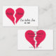 Utilice esta tarjeta como tarjeta RSVP para un evento como una fiesta de compromiso, cena valentina o fiesta u otro evento. Personalizable completo para su uso. El diseño presenta dos mitades de un corazón que coinciden. Un nombre personalizado está en cada mitad del corazón y es fácil de personalizar. Las palabras bajo los corazones dicen "nuestros corazones se unen como uno" y pueden cambiarse a sus propias palabras. Los colores son rojo y negro. La parte de atrás tiene el corazón centrado en las palabras de personalizable en la parte superior.