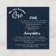 Esta minimalista tarjeta de gabinete incluye sofisticados guiones blancos en un fondo azul marino, con un logo de esquina "dos se convierten en uno". Personalizar esta tarjeta de gabinete con su propia fuente, texto y color. Echa un vistazo a la colección "Dos se convierten en uno" de nuestra tienda.