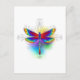 Luminosa, arco iris, libélula poligonal sobre fondo blanco, pintada con acuarela.
