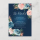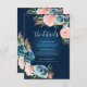 Tarjeta De Recepción Dramático Purpurina Floral Boho Azul y Rubor