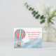 La tarjeta de acompañamiento para la ducha de bebé presenta un cachorro lindo en un globo aerostático volando sobre las nubes.
