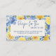 Tarjeta De Recepción Ducha de limón cítrico amarillo y azul de novia
