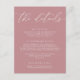 Tarjeta De Recepción Dusty Rosa Moderno Boda Minimalista Coche de gabin
