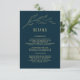Diseño boda creativo y de moda, con una ramita dorada con hojas dibujada a mano. Fondo azul profundo. Realmente único, moderno y elegante. Para bodas en otoño, bodas de verano, bodas en el jardín o cualquier tipo de boda moderna y elegante.