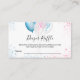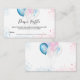 Un boleto de rifa de pañal para una ducha de bebé/revelación de género. Un fondo blanco. Decorada con purpurina azul y rosa, chispas y globos. Envíe estas tarjetas de gabinete con las invitaciones correspondientes a la ducha de bebé