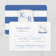 Un elegante escudo boda de color azul marino y blanco, de inspiración costera, RSVP, y la elección de las comidas insertan el diseño de la tarjeta. Tenga en cuenta que puede agregar y eliminar campos de texto introduciendo la herramienta de diseño (haga clic para personalizar el texto y, a continuación, desplácese hasta la parte inferior debajo de los cuadros de entrada de texto). SKU