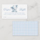 Cuidadas y sofisticadas tarjetas de rifa de pañal para una ducha infantil con la temática "Little Peanut" (cacahuete pequeño), con el adorable elefante azul del bebé vestido con una corbata de arco y un patrón de gingham azul claro en la parte posterior.