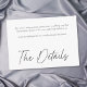 Celebrate your love with this minimalist black and white small wedding details enclosure card design. Featuring an elegant, simple design, it's perfect for an elegant autumn ceremony. This earthy, modern look offers a warm and sophisticated feel for your wedding. Created by Simply Farmhouse Press.