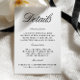 Provide guests with all the essential information in style with this elegant wedding details card. Use it to share travel directions, hotel accommodations, RSVP instructions, or your wedding website link. Fully customizable. Coordinates with the matching “Sabrina” —follow the link on this page to view matching signage, menus, invitations, and more. • Mockups for this design were created using Midjourney AI.